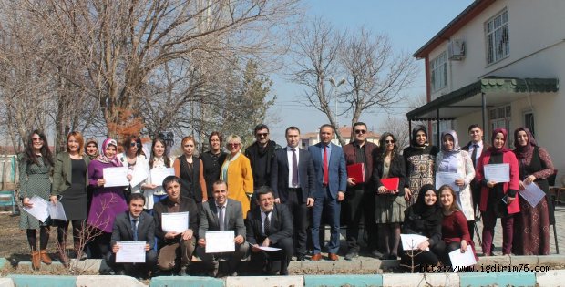 Aile ve Sosyal Politikalar Iğdır İl Müdürü Sefer Coşar, Aile Danışmanlığı ile tüm konularda en etkili psikolojik danışmanlık yöntemleriyle sorunların çözümü, bilgi ve randevu gibi konularda personellerimize uzmanlar tarafından bir hafta süren eğitim programı düzenledik. Bu gün ise eğitim sonunda büyük başarı gösteren personellerimize ve eğitmenlere sertifika ve plaket taktim etik.”dedi.