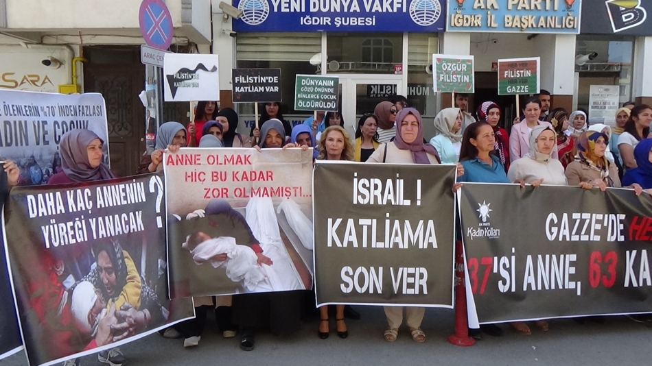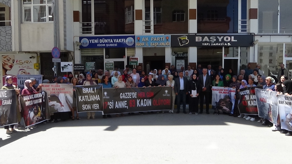 Bizler bugün AK Parti Iğdır il kadın kolları başkanlığı, teşkilatlarımız, kadın milletvekilleri, sivil toplum kuruluşu temsilcileri olarak buradayız. Şu anda 81 ildeak partili kadınlar olarak Gazzeli anneler için dimdik ayaktayız.