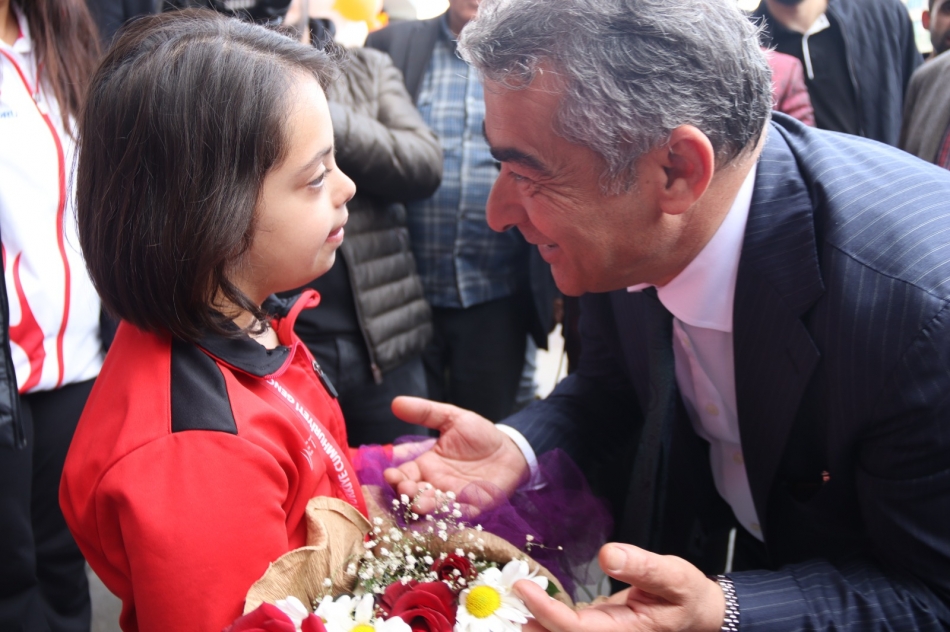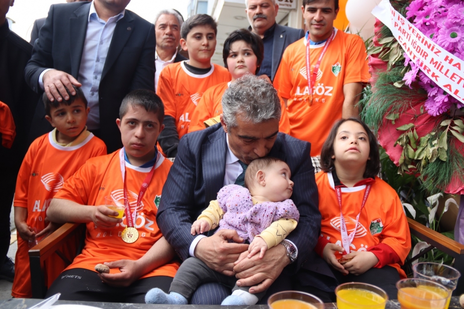 Le Pati veterinerlik kliniğinin açılışı programına katılan Alagöz, Özel sporcularla buluşarak sohbet etti.
