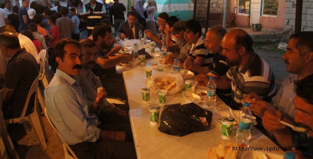 Iğdır Belediyesi iftar çadırı kurdu Iğdır belediyesi Ramazan ayı boyunca yurttaşlara yemek vermek amacıyla iftar çadırı kurdu. Iğdır Belediyesi tarafından Dört yol Caddesi üzerinde 200 kişilik iftar çadırı kuruldu. Dün ilki verilen iftara, Iğdır Belediye eş başkanı Başkanı Şaziye Önder belediye başkanı Murat Yikit , , BDP İl,ilçe ve belde yöneticileri,belediye ve il genel meclis üyelerinin yanı sıra yüzlerce yurttaş katıldı. Ezan okunmadan önce yemeklerini almak için yurttaşlar uzun kuyruk