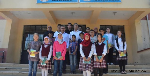 Mehmet Akif Ersoy Ortaokullarına dağıtıldı. Kitap dağıtımına Iğdır Belediye Eş Başkanı Murat Yikit ile