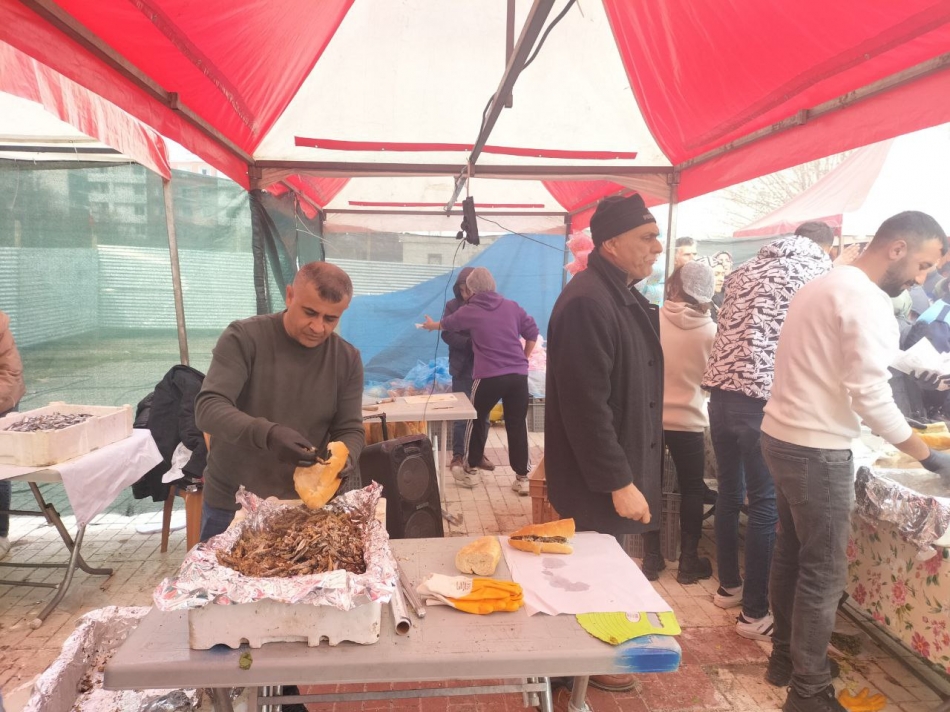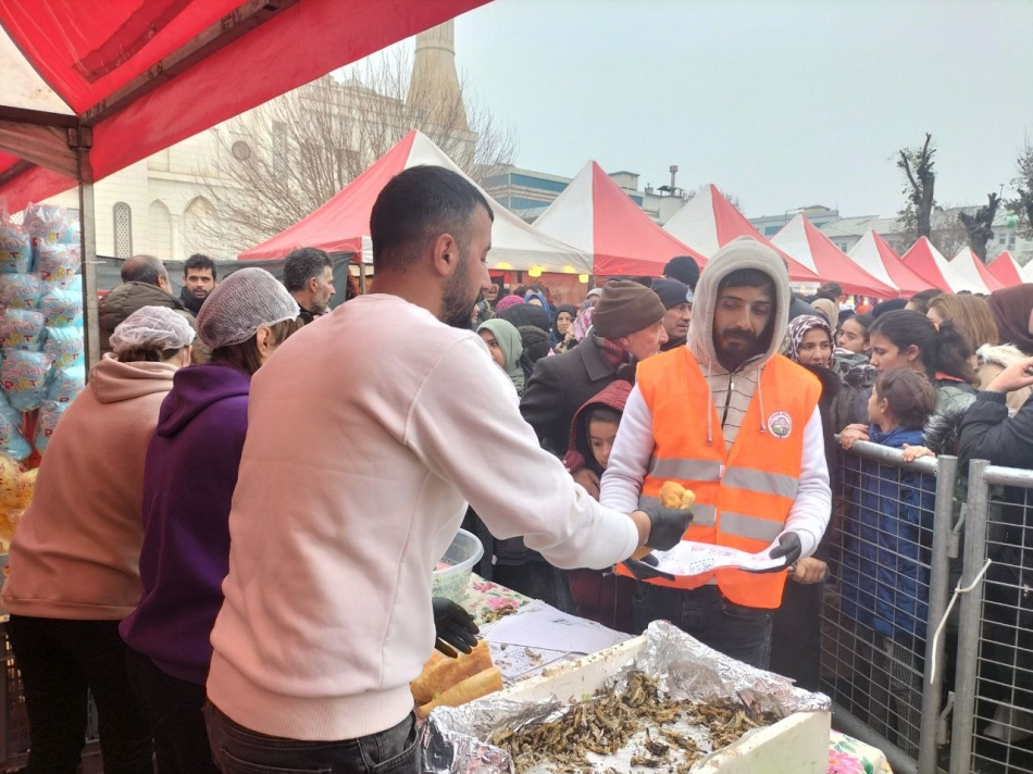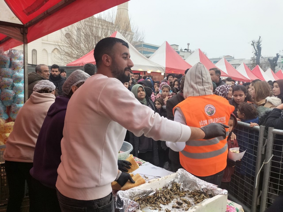 Iğdır’da 81 ilden yöresel ürünlerinin stantlarda satışa sunulduğu meydanda, katılımcılara ekmek arası hamsi ikramında bulunuldu.