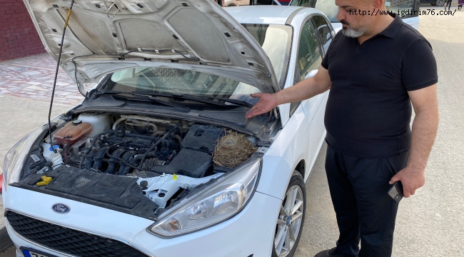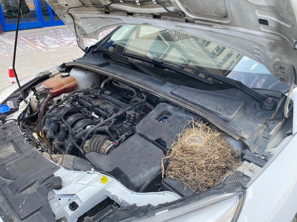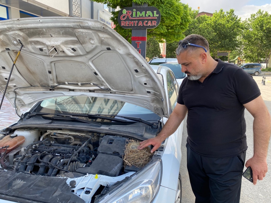 Iğdır'da bir araç kiralama şirketi, 17 günlük tam kapanmada hava limanında beklettiği otomobilin motor bölümünde kuşun yuva yaptığı anlaşıldı.