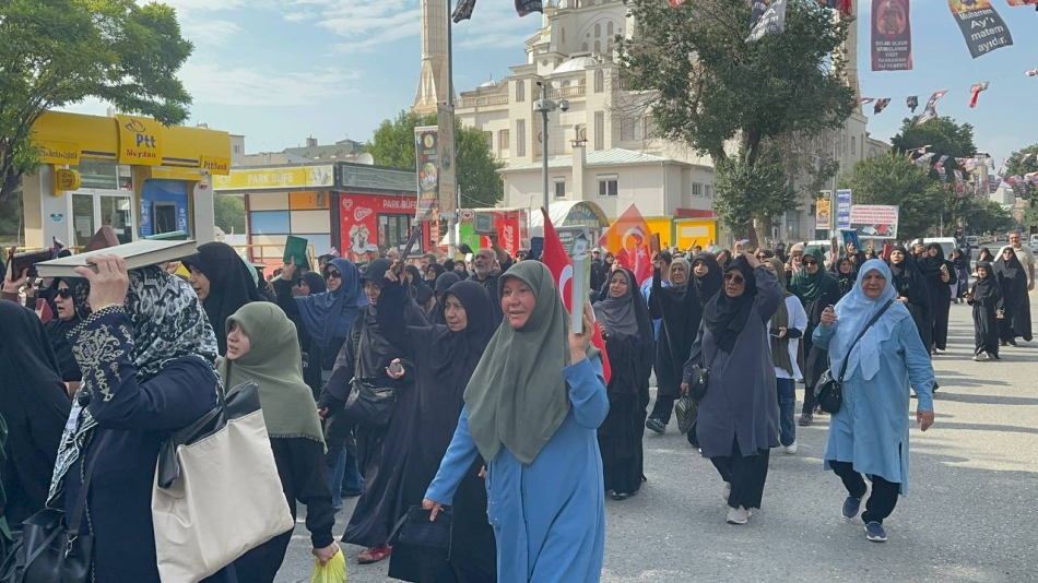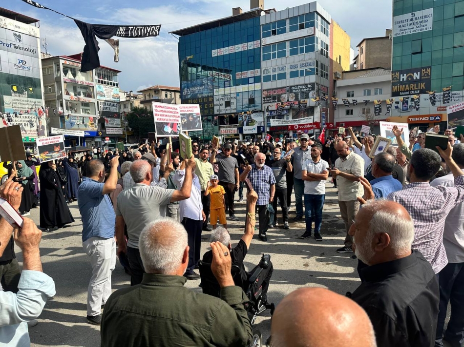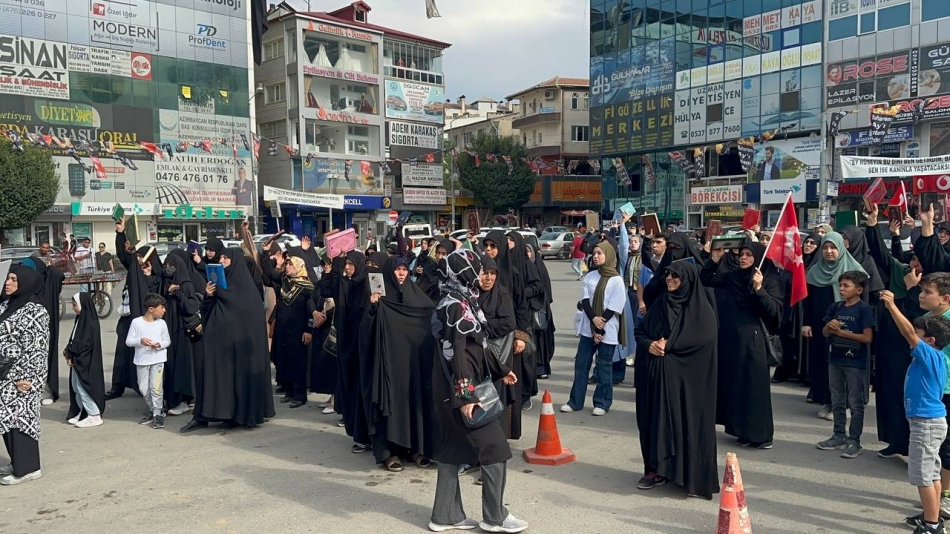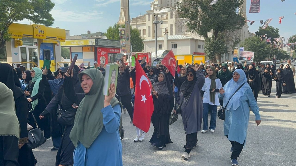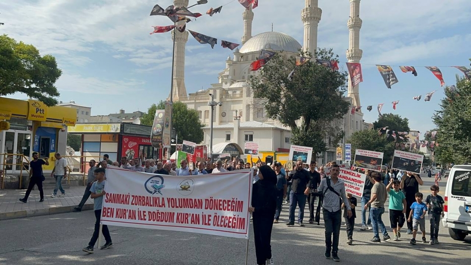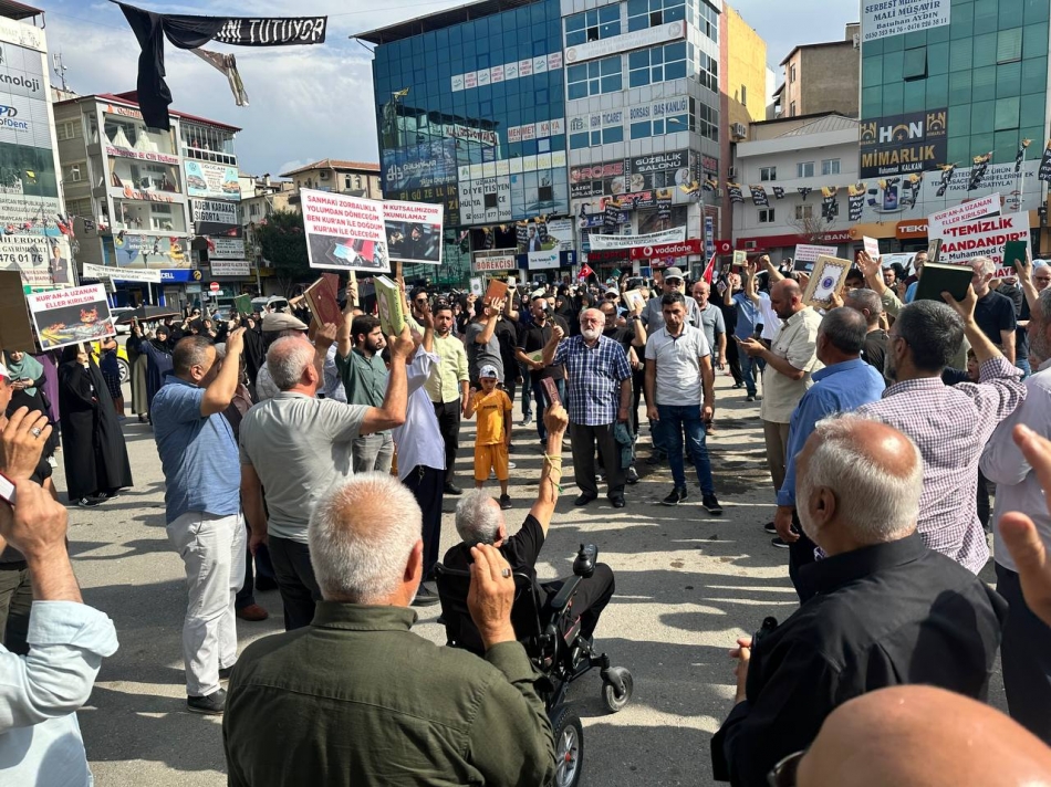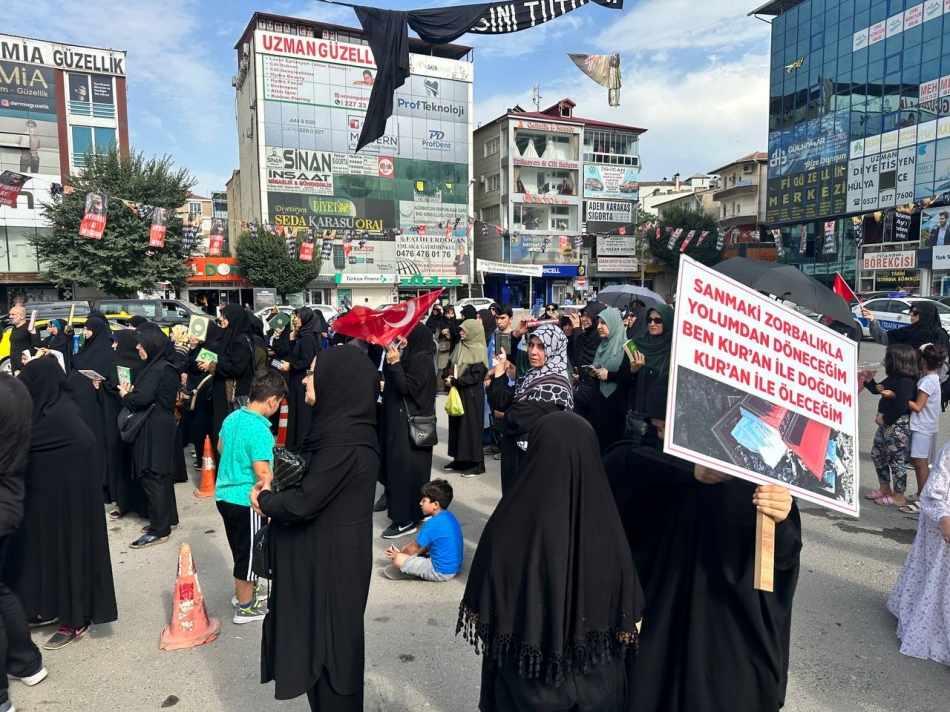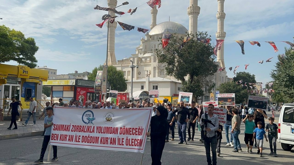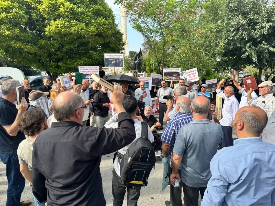 Önce Kültür Merkezinde bir araya gelen vatandaşlara Kuran-ı Kerim’in fazileti ve önemi analtıldı. Ardından şehir merkezine yürüyen vatandaşlar Zübeyde Hanım Bulvarında Kuran’a uzanan eller kırılsın şeklinde slogan atılar.