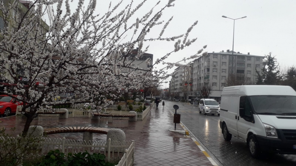 Yağmur ve kar karışımı yağış yüksek kesimlerde etkili oldu.Vatandaşlar Kaysı ağaçları çiçek açtı hava sıcaklığının düşmesi ve kar yağışı don olaylarının meydana gelmesine sebep olacak.İnşallah don meydana gelmez.”dediler.
