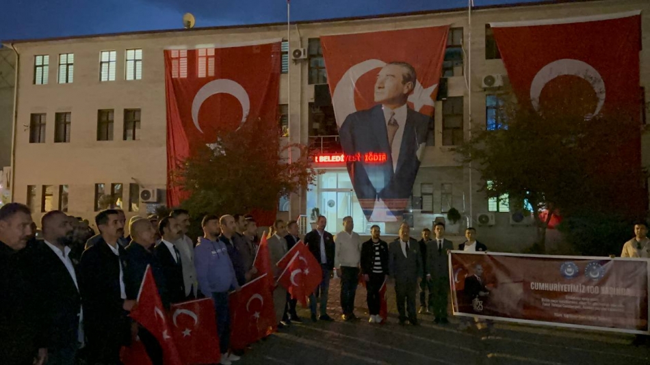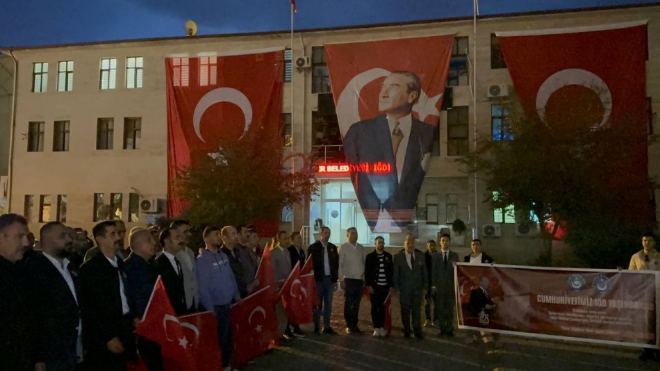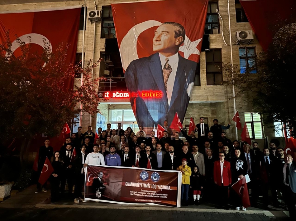 Türkiye Kamu Sen’e bağlı Türk Eğitim-Sen Iğdır Şubesi, Cumhuriyet’in 100. Yılını Türk bayraklarıyla kutladı.