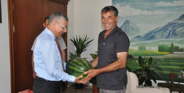 Iğdır’ın Oba köyünde karpuz üreticiliği yapan Alican Açkan, Vali Ahmet Turgay Alpman'ı makamında ziyaret etti.