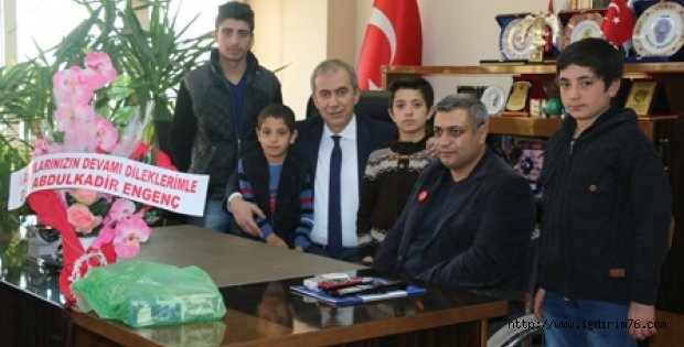 IĞDIRLI GAZİ ABDULKADİR ENGENÇ VE ÇOCUKLARI EMNİYET MÜDÜRÜMÜZÜ ZİYARETE GELDİ Iğdırlı gazi Abdulkadir ENGENÇ ile çocukları Bedirhan, Savaş, Barış ve Nadir İl Emniyet Müdürümüz Yüksel BABAL’ı Makamında ziyaret ettiler. Ziyaret esnasında konuklarına ikramlarda bulunan Emniyet Müdürü Yüksel BABAL yaptığı açıklamada: Gazimiz, Abdulkadir ENGENÇ ve çocuklarının makamında yaptıkları ziyaretten duyduğu memnuniyeti ifade ederek, bu vesile ile şehitlerimize Allahtan rahmet, gazilerimize de uzu