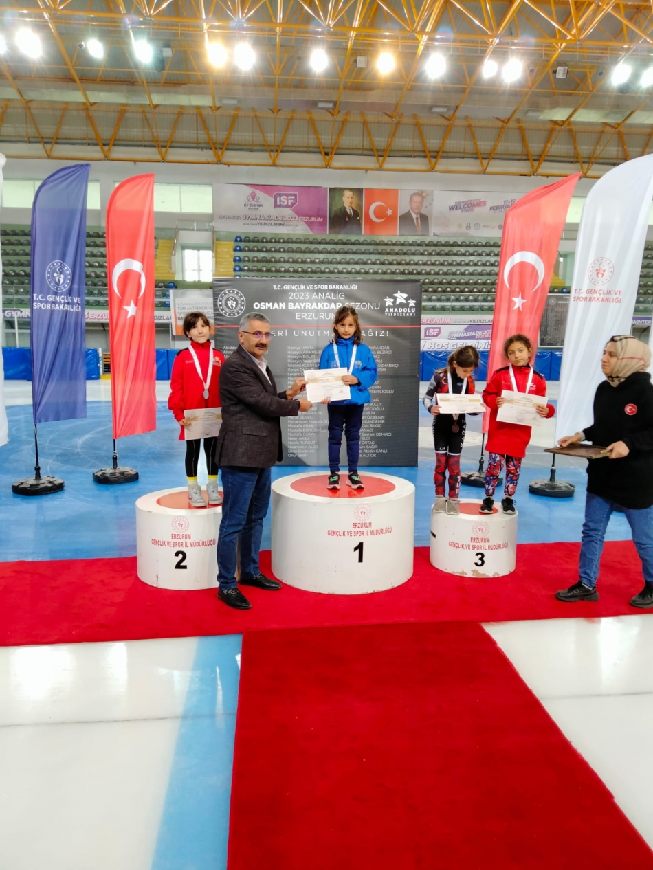 Iğdırlı olan Erzurum’da yaşayan Ravzanur Aydoğan isimli ilkokul öğrencisi Short Track (sürat pateni) yarışmasında 1 altın ve 1 gümüş madalya kazandı.