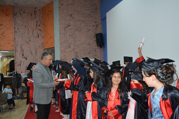 Programda çeşitli şarkılar söyleyen şiirler okuyan öğrencilerin doğumdan yaşlılığa kadar olan süreği anlatan skeci büyük beğeni alırken velilerin duygulandığı görüldü. Daha sonra öğrenciler keplerini havaya atarak doyasıya eğlendiler. Öğrencilerin mezuniyet belgelerini sınıf öğretmeni Aslı Gürel ve Müdür yardımcısı Erol Bulakbasar taktim etti. Öykü Akaslan’ın isimli öğrencinin keman konseri beğeni ile izlendi.