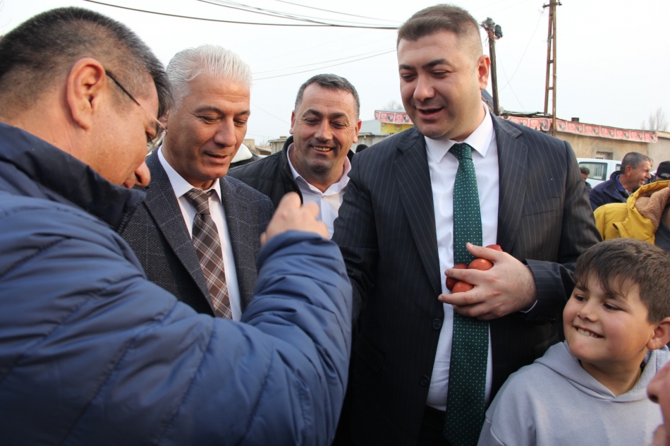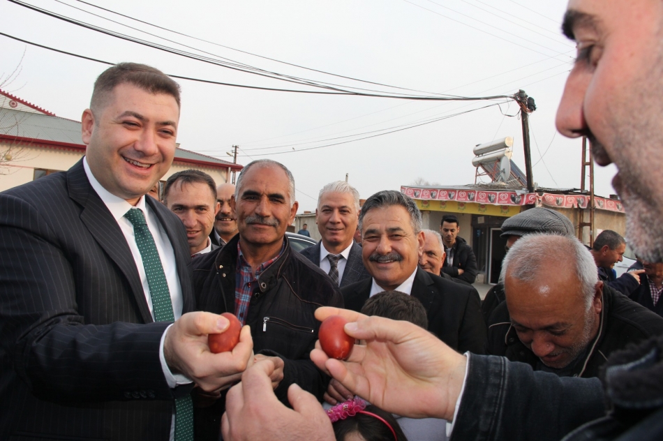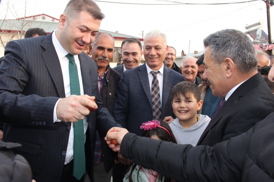 Hakmehmet köyünde Cemre ateşi etkinliklerine de katılan Vali yardımcımız Ömer Said Karakaş ve beraberindeki heyete köy halkı tarafından Nevruz bayramının en önemli sembollerinden biri olan Kırmızı yumurtalar hediye edildi.