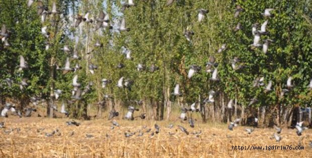 Mısır hasatından sonra tarlada kalan mısır kocanı ve mısır tanelerini yemek için toplu olarak tarlaya inen Özellikle Güvercin ve kargalar güneşli havada karınlarını doyurdular.