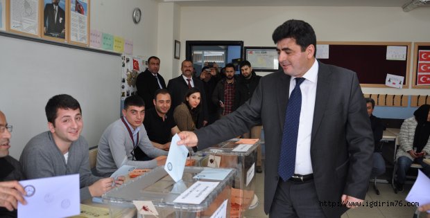 MHP ADAYI GÜNDÜZ GÜNEŞ OYUNU KULLANDI Iğdır da karlşı ve soğuk havada oy verme işi bütün hızıyla sürüyor.Vatandaşlar kar ve soğuğa aldırmadan oyunu kullanıyor. MHP belediye başkan adayı Gündüz Güneş oyunu kullandı..Güneş, oyunu M.Hüsnü Özğeyin İlköğretim Okulu'nda kullandı. 1025 NO.LU SANDIK Oy kullanacağı okula partililerle gelen Güneş , gazetecilerin ve seçmenlerin ilgisi arasında 1025 nolu sandığın olduğu sınıfa gitti. Sandık görevlileri ile tokalaşan Güneş, nüfus cüzd