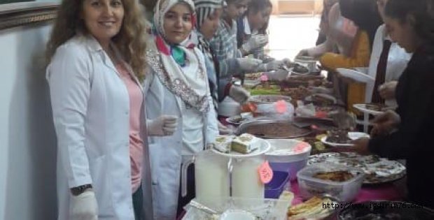 öğretmen ve öğrencilerin yaptıkları yiyecekler satıldı.