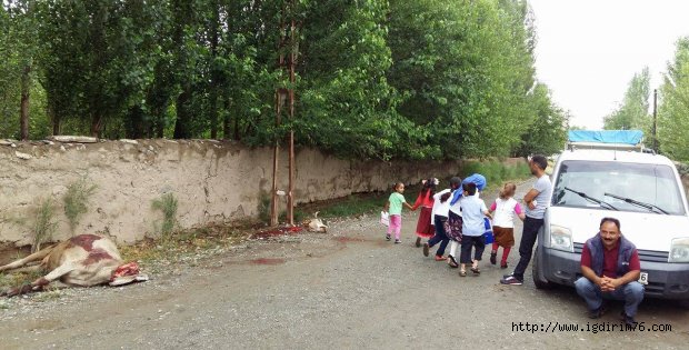 Iğdır merkeze bağlı Oba köyünde kopmuş elektrik teline kapılan bir Büyükbaş hayvan telef oldu.