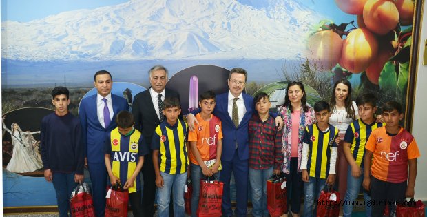 Valimiz Sn. Enver Ünlü, çocuklarımızı makamında ağırlayarak onlara tuttukları takımların formalarını, krampon ve çeşitli kitaplar armağan etti.